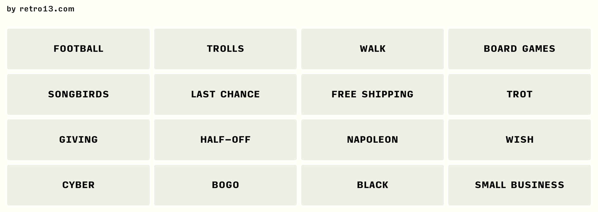 A connections game for after Thanksgiving.