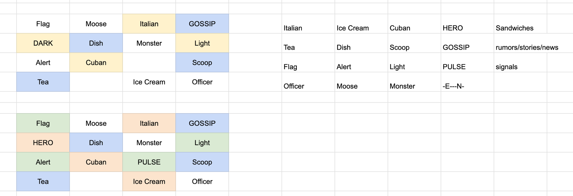 In the end, the four correct groupings were: