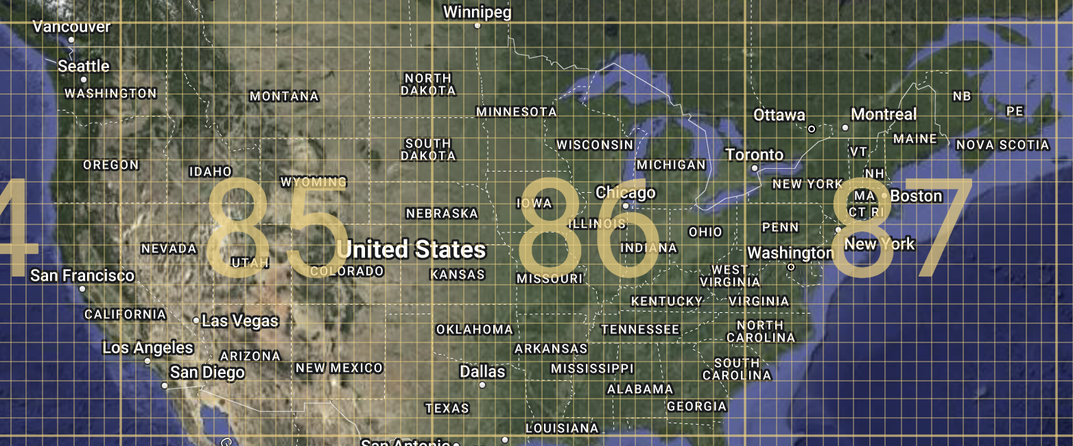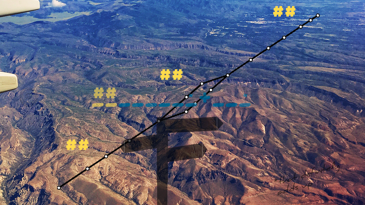 The format of the blanks is unique. Searching for types of coordinates eventually you find out about Google Plus Codes. Finding Plus Codes makes sense of those yellow hashtags above the route. 85 is the prefix for the region in New Mexico, 86 for the Midwest and 87 for the Eastern US. And we also know from the puzzle that two of the places must add up to 7.