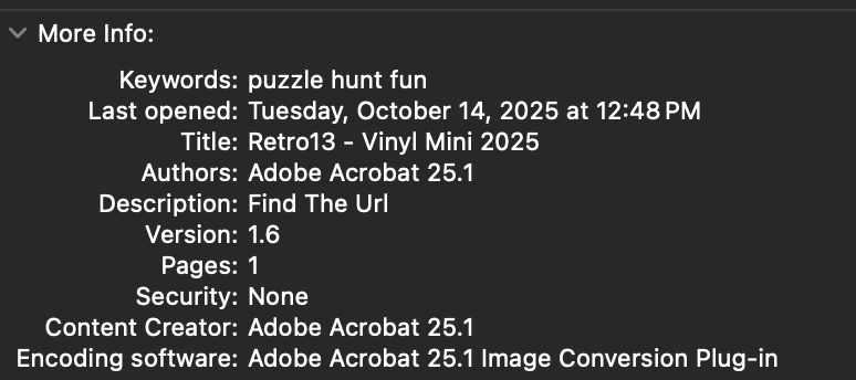 When in doubt, look under the hood. Most files contain metadata — hidden bits of information that can include keywords or hints. Using your favorite file inspector tool, take a peek. You might find something helpful.